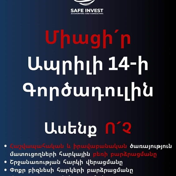Safe Invest-ը մատուցում է հաշվապահական ծառայություններ, իրենց վստահելով դուք կավելացնեք Ձեր բիզնեսի արժեքը։ @safe_invest_accounting